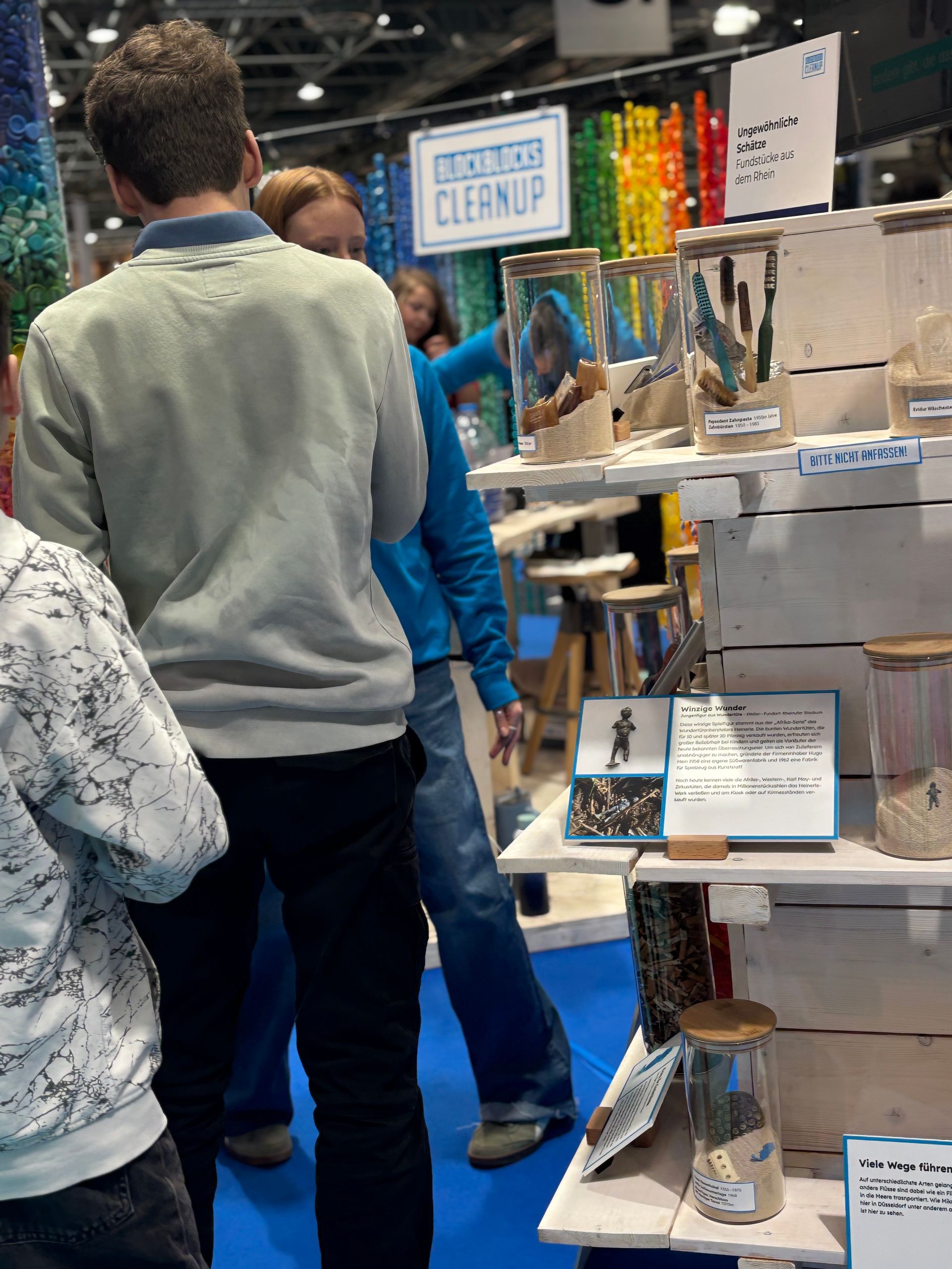 innehalten: Ausgestellte Objekte vom Rheinufer, ergänzt durch Infotafeln und spannende Geschichten, machten deutlich, wie lange Abfälle in unseren Gewässern überdauern – und was sie erzählen können.